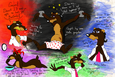 Danbuster (my alter-ego) and his megalomaniac-wizard twin brother Retsubnad are fully-clothed, but characters like Frederick (Dan's ferret buddy), Wally (Retsy's servant) and Thoronraw (Retsy's gryphon) wear only top-clothes... and a few like Spencer (Dan's rat friend) and Boaz (a little harvest mouse I'm making a children's book with) wear only neckerchiefs.