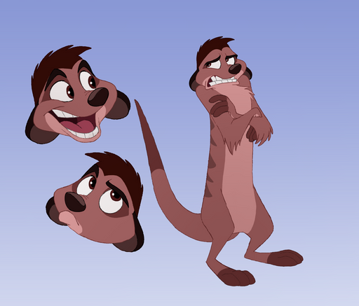 All a matter of personal tastes I guess. Timon looks cool, for Timon, but when I see other meerkats done in that style, they just don't register as meerkats to me. But then Disney got it all wrong in TLK 1 & 1/2, meerkats don't really fear hyeans that much because hyeanas are mostly scavenders. A meerkat's real worry are mostly birds of prey and in reality, meerkats aren't the skittish little whimps they are protrayed to be in that "movie", they are very brave and will fight to the death. When it comes to diet, basicaly a meerkat will eat anything that does not eat it first and they are omnivores. The comment made by Timon's uncle about meerkats not being able to eat grass isn't true. Meerkats can and do eat grass. I do like the idea of him not being a full meerkat and actually being half Indian mongoose though. KM claims to be a meerkat, but there's some speculation that she might actually be half fossa.