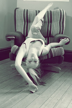 oh this is a really cool one. very interesting perspective and i like the way you're posed against the couch and wall. and you managed to frame yourself so nicely.