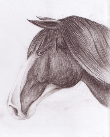 Completed on A4 paper over several hours using 4B pencil, electric eraser, various sized paper blenders and lots of patience! Really happy with how this one turned out. My apologies for how grainy it looks - my scanner is being weird, in real life it is all very smooth! I've not had a lot of success creating realistic drawings when I'm drawing more of the horse than just the head - I tend to find I get impatient and struggle doing the details because they are smaller. This time though I stuck with it and it has come out lovely.