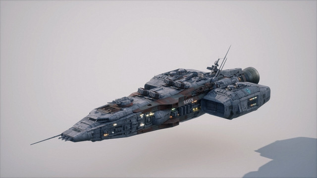 This is a 3D model of a lowpoly and game-ready scifi spaceship.