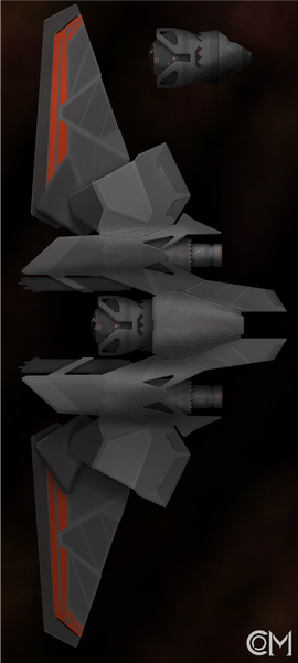 This is a 3D model of a lowpoly and game-ready modular scifi fighter kit.