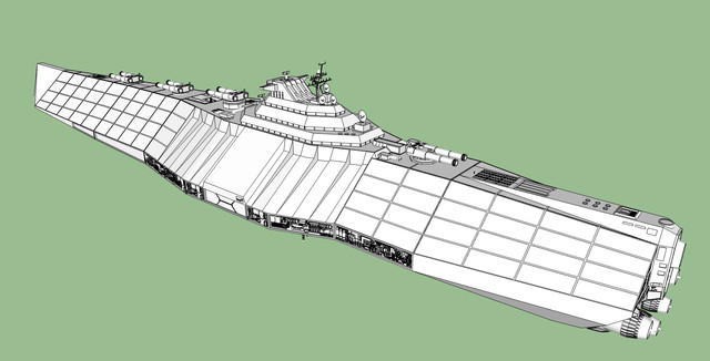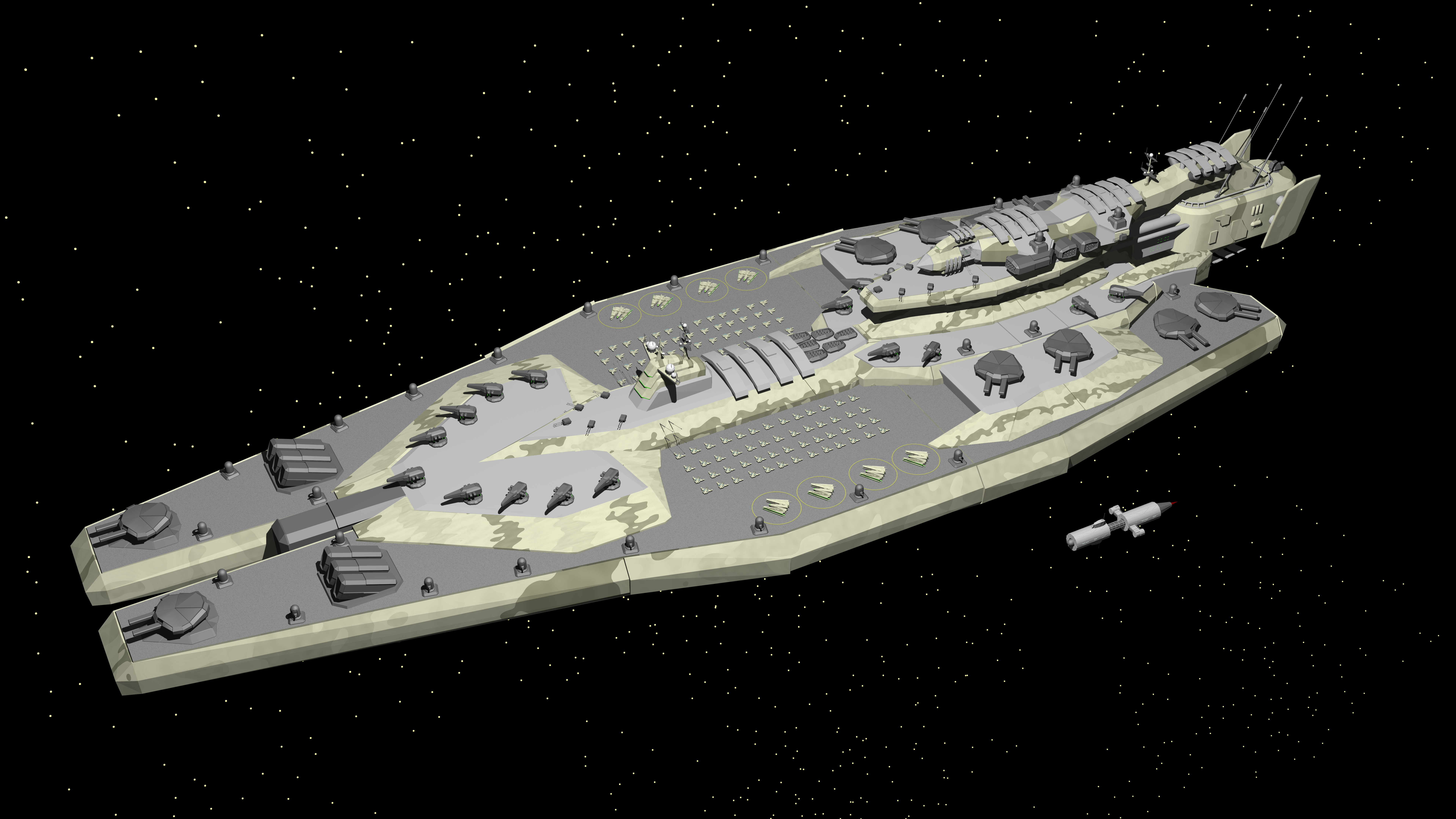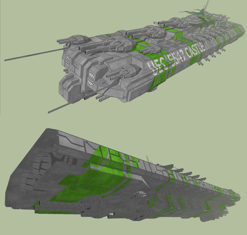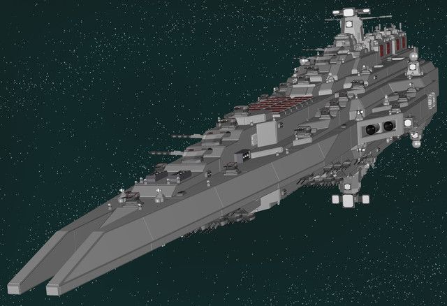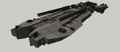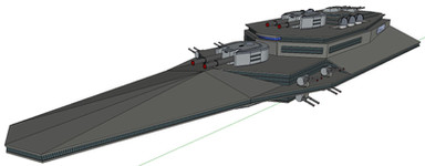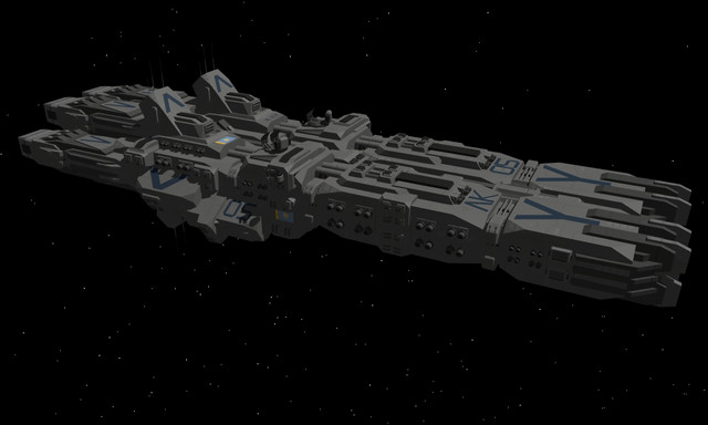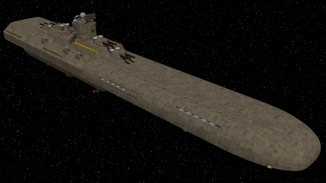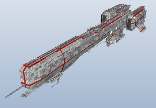 It is a long rather flat ship with a large amount of guns on it and with three gigantic 'Entropy Class' cannons on it, two up the back together on a raised platform and another in the middle and at the front on a lower plane is a number of large canons, but not as large as the Entropy Cannons.