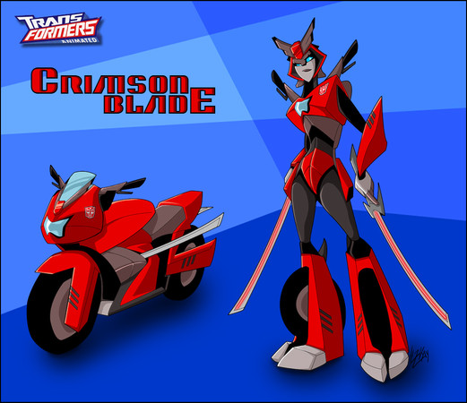 Obviously, like her Generation 1 namesake, she's based on the Tracks bodyform, the Animated version of which was designed by the inconceivable Irineo Maramba. I took the basic body structure, femmed it up a bit, changed a few paint details, and viola! (She uses the same body colors as Tracks... I think only her face and glass are new to the palette.)