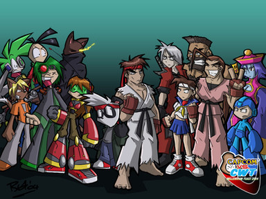 Because it was one of three grand prize winners in SNK Japan's second "SNK vs Capcom" art contest. That's why the rush... I wanted to make the deadline. Which is why there's no shading on the "card" characters, and only on the four kids from the Neo-Geo Pocket game... but it does kinda make them less "real".