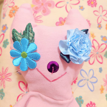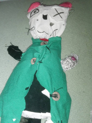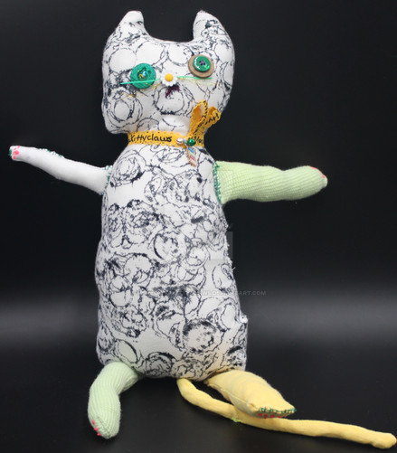 Handmade soft sculpture 1-20 in a series of cats and bunnies.