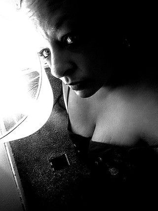 I love the angle of this shot and how your pose leads us from the base left to the top right hand corner. Yes u love black and white lol, but it really works, especially the way you have faded the bottom dark area and lead us to brilliant white light further up. Very diva like pose madam and you achieved what you set out to do, it shows you as strong and feminine but you forgot to add in, hot as hell