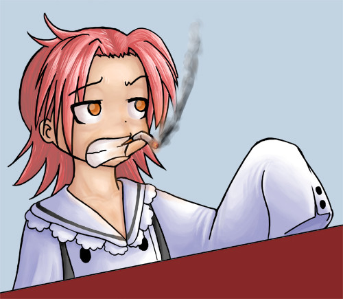 Ah, good ol' Rinpu. Katt was pretty much my first and only anime crush. I discovered her and Breath of Fire II back when I was 13 or something like that. It was at that time that I realized I liked short-haired red-heads. Since then, I don't think I've ever had an attachment to any anime character. I'm such a nerd.Although the infatuation has since faded, she's left a legacy in my webcomic. Circa high school, when I cooked up the idea of M-Theory, I made a character named Katterie, who has short red hair. Katterie is now very different from when I first created her, except she still has the name, the hair, and a similar weapon.