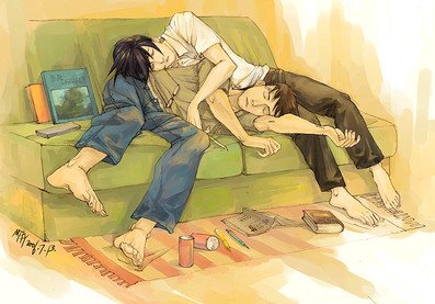 This is really freaking good very talented I wish I could draw that good ooo is he "undressing" lol