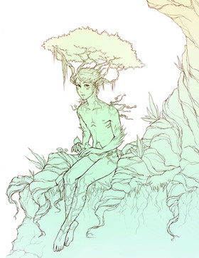 I must agree with Arasdel. The way he fuses with the tree is simply awesome, and you gave him and incredibly strong gaze. It makes me wonder what he's been thinking about (: