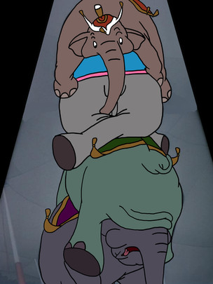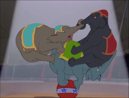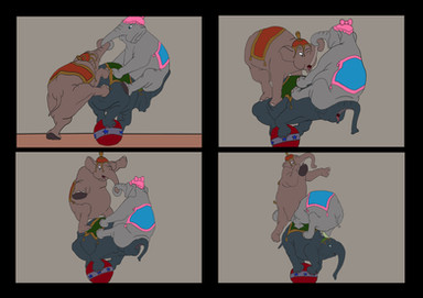 "Aren't we a bit clumsy, dear?" Mrs. Jumbo asked as she used her trunk to lift Prissy's bottom off of her head, her companion feeling embarrassed as well as slightly offended by the question while Catty waited in the wing.