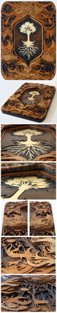 Layered laser cut plywood illustration measuring 375 x 150 mm.