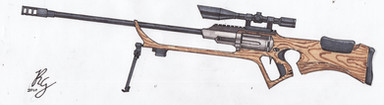 My only thoughts are that I would prefer this in 30-06. 30-06 is actually a slightly better round then 308. But the real reason is that it has a connotation of being a bit of an "old west" gun and that would just add to the romance of a revolver based rifle. Like this is some sort of CowboyPunk sniper rifle. The only thing that would make that better is if you changed the handguard into a lever action but I'm not saying that you should I like it perfectly as is. Or better yet as was. In you prior rev it has the deadly look of a rapier and lets be honest that is what sniper rifle is.