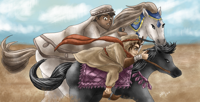 Full Body(+2), Colored(+2), Shaded(+3), Detailed BG(+2), Horse + Rider(+2)