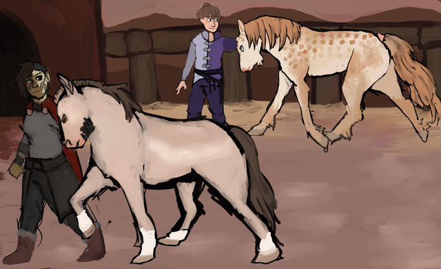 Full Body(+2), Colored(+2), Shaded(+3), Detailed BG(+2), Horse + Rider(+2), Horse Training(+1)