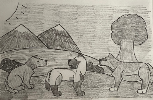 This is not that bad a drawing. It's better than the one drawing I've got. and btw the wolf looks like it has a forked tongue.