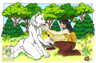 this is a commission of David in his 16' tall wolven form done by and i think it turned out pretty well, he is able to lift over a total of 40 tons, has amazing healing abilities, and is the fastest and most powerful of his people: the Tohopkahope you guys do too ^^