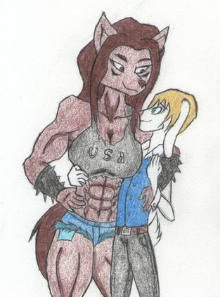 kinda cute in a way, knowing a massive werewolf gets a hug from a very sexy and fragile thing xD awesome job ^^