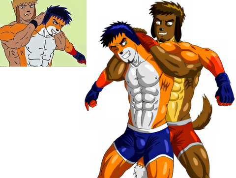 Okay this is something i've been looking forward to. A pic of David and his adoptive father, Gahege, doing something together. Of course this picture is quite off canon but i don't care. It's fun to look at.Like a lot of sons with their dads, David comes to a point where he thinks "yeah, i can take him" and decides to test that out. Now Gahege loves his son... but as you can see the fox's expression says "oooh, it is on like donkey kong"