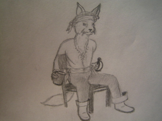 I play a character named "Scage" in a pirate role play. I thought he'd look cool drawn as an anthromorphic wolf, though he is human in the RP. Drew this at the orthodontist XDRelated content