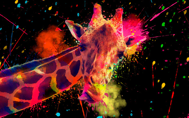 I see giraffes in these colors and surrounded by stuff like that - - under certain conditions and influences...