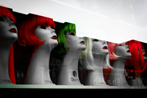 I was walking by a wig shop in Oakland, and I felt compelled to run in to take a picture.Related content