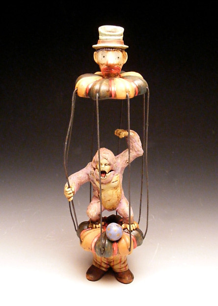 earthenware w/ slips and underglazes.these new psycons have bases, necks and are taller than my old psycons. They are 8-10" tall.