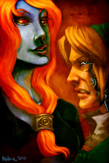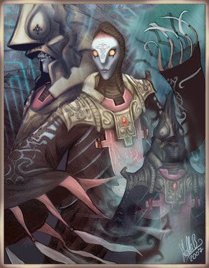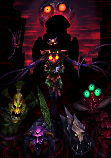 The body tracing on Majora reminds me of Amano's stuff, but the details and heavy brush strokes are definitely you and I like how the two styles meet.