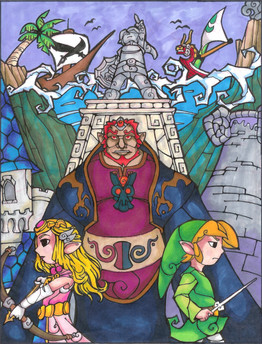 Like the styles and colors you're usin' here! Great job, the top panel has a Wind Waker stylized sort of vibe comin' from it, but much more detailed, like it also met Twilight Princess along the way. A+!