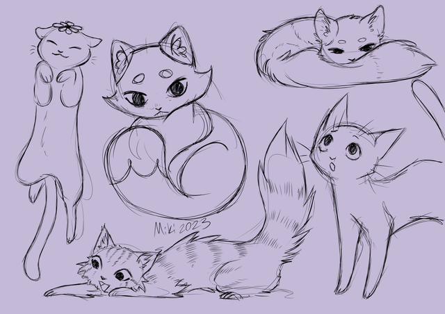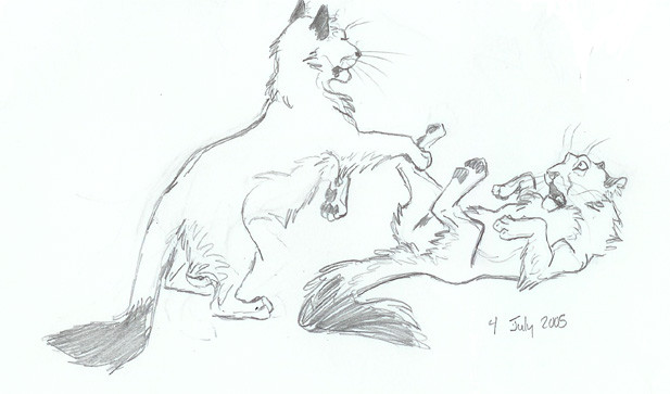 3.) The last cat...well, I just did not know how I should have drawn the front legs and paws. So I left him deformed.