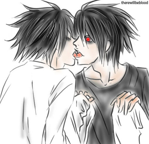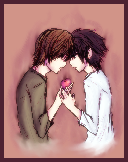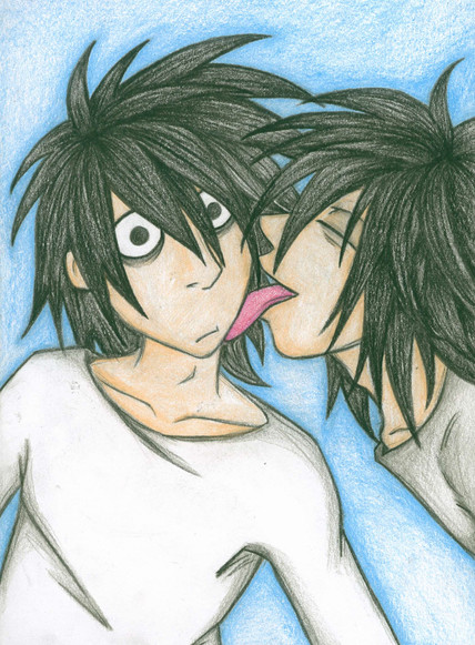 i love this. L && B are awesome. is that 'jam' on his finger? does L want some? xD lawl. some depth in the background would give it a less "empty" feel, though. :]