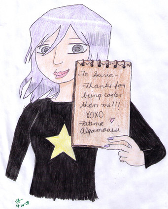 Oh, I draw by hand (and scan my drawings). I use almost anything to make my drawings. First I draw them with a pencil then I colour the lines (usually) with markers. I love to colour with watercolours. Sometimes I use acrylics or coloured pencils when I'm colouring :3