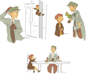 Although, when he was a baby and Layton wasn't home, feeding time would probably always end with Alfendi throwing his baby food on the floor and spitting a mouthful of it in Flora's face, wouldn't it?