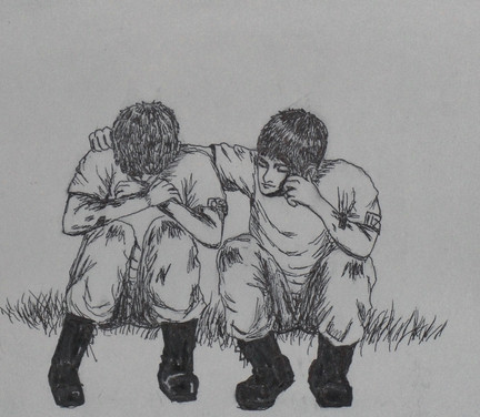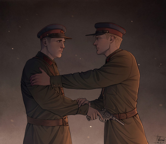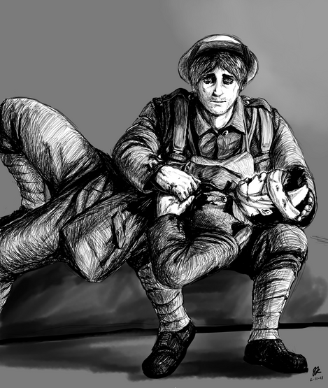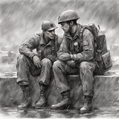 -From a black and white photo of two soldiers-