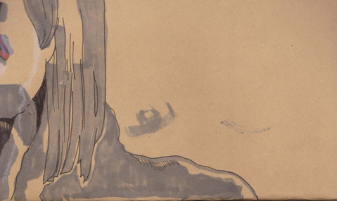 Watercolours and white ink, June-July 2011, 18x28 cmLuise and Elke on a winter stroll along the Stadtkanal in Potsdam, featuring the once famous garrison church. This photo served as my initial inspiration and reference.