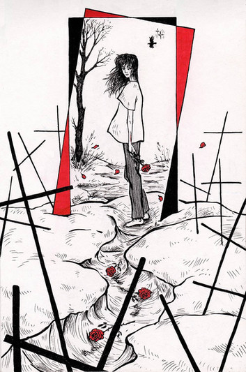 From Luise chapter 5, without text. Or not. I should be working with ch2 lol. Not sure whether I will still be satisfied with this when the time comes for ch5. Meanwhile, this is just because. Due to the paper that I chose on purpose (no watercolour paper whatsoever) I could make but a limited number of strokes, which was relieving since I simply could not keep correcting forever. Also, I tried to give up my palette of favourite colours for a while.