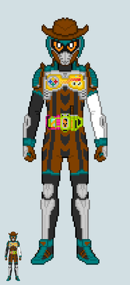 " The Nurse rider who uses the power of games to fight is (Clock ticking noise) Boken"( Game no chikara de tatakau Nurse Rider wa... Bōken-ka!)"