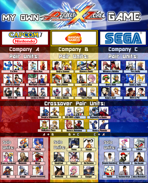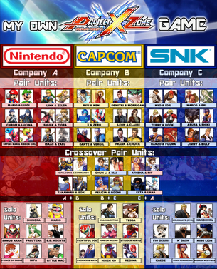 For some time I wanted to do this! Felt like making my own PXZ roster with 3 of my favorite companies: Nintendo, Square Enix, and Bandai Namco.Characters: