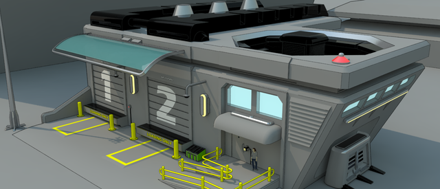 Ah, nice. Very chunky, indestructable look. From an aesthetics viewpoint, the proportions are nice but it couls use some medium detail in the walls to make them a little more believable than just perfect, seamless concrete all the way around. Maybe think about some seams or relief patterns, or some sort of "reinforcement." Maybe add some stuff to the front door, too, like a little access panel. Nothing critical, just enough to match the detail you put into the appliances and such on the roof. From a design standpoint, one of those turrets might be more useful at the opposite corner of the other so that each one has a 3/4 circle view or better of the surroundings and can see enemies coming from all sides . That and maybe some light fixtures to illuminate the perimeter at night. Details make the world go 'round!