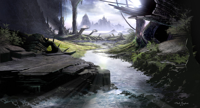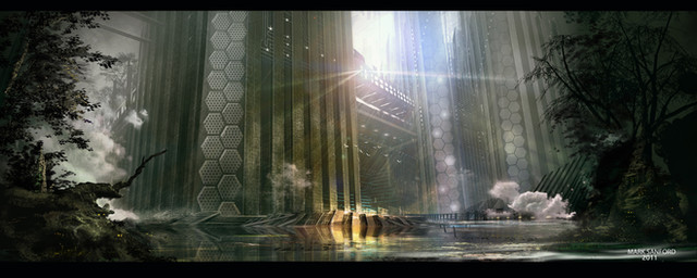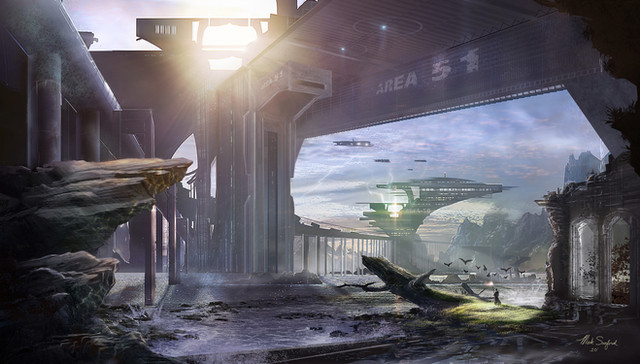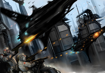 I used photoshop CS4 ......I painted this scene mainly to practice perspective and to design scifi objects ...... practice ...practice...practice.....this is basically a military dog fight near a hydroelectric dam .....Related content