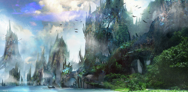 I love how your landscapes tend to have that scenic natural beauty with (ruined?) futuristic structures woven in. Extremely awesome.