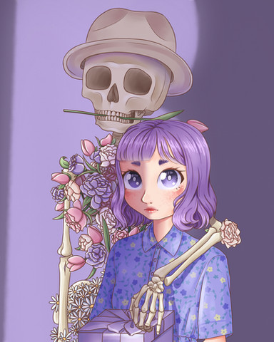 #digitalart #digitalpainting #skull #originalcharacter #magic #horror #burning #bush #characterdesign #floral #flowers #nature #roses