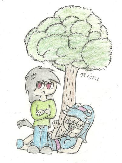 My half on an art trade with my good friendHere we have her two OC's Candy and Renae playing tag in the park.