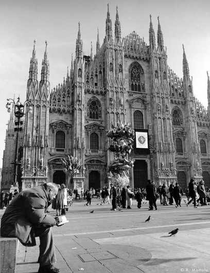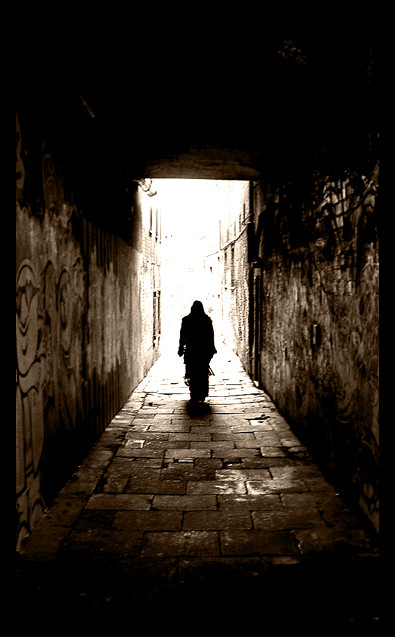 The scene is inside an old city gate, in Bergamo Alta, I was waiting in the dark (see, one can do street photorgraphy with such a beast, but hidden well behind the dark cloth).