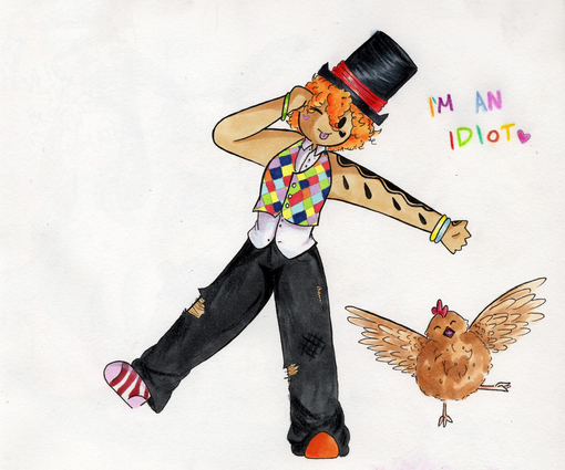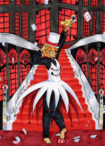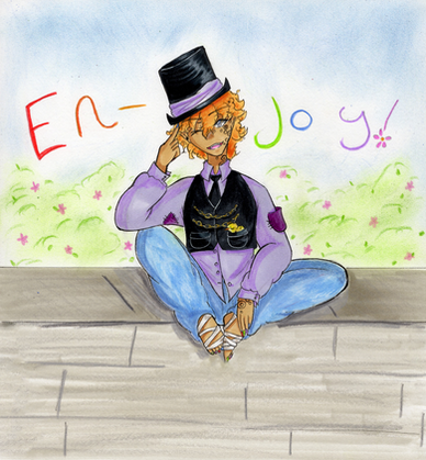 It didn't overly bother him when the entire population of the world (except one girl-Tikkutokku) was moved for 100,000 years. He just loves to live the simple life of a street performer in his overly average slightly run down simple apartment, he lives alone mostly and barely anyone stops to see his act but that never gets him down! He's always ready to perform and try little tricks here and there, he sometimes casts illusions without realising as his shadow over hangs and will pull the strings on him sometimes other wise theres barely a time you can wipe the grin off his face though he quiet often gets disappointed as no one watches him perform. He has his pet chicken 'Puff' who has been his only real friend for ages as he lives an otherwise simple life. He saved Puff from the streets and they became inseparable. He never really knew what happened to his parents just that they had past away when he was little. It might of been a house fire but he never really knew, the news and police suspected it might of been murder or the fire was set on purpose. He just tried to smile through it instead. He just got use to living alone and fending for himself as he performed on the sides of the streets and observed everyone else like their lives. Doesn't mean he likes being alone. Just use to it. He doesn't know his shadow version exists or interferes in his life, as he is completely unaware of the others existence or schemes and plans that he makes during the night while his sleeps. But since the shadow does nothing to harm him they have no real reason to interact. Though sometimes the shadow can plant ideas into his head and he may become confused why he was so suddenly interested in certain things or people. He can't see out of one of his eyes, but attempts to hide this fact and his true eye colour as he's always wearing different contact lenses. He was born with the one eye blind, though the other is perfectly normal. He’s also very attached to his top hats as he doesn't leave the house without them on his head believing it was how it was meant to be. And also that a street performer such as himself should always be ready to perform. His age is an estimate since he isn't exactly sure how old he is himself and plus after he returned to earth he was technically 100,019 not just 19. He loves card tricks and cold weather since he believes it to be magical much like his act. Winter magic. He is also able to balance almost anything. His speciality is balancing on balls and multiple hats on his head. He can be quiet childish and friendly when he wants to be, but also serious when needed.