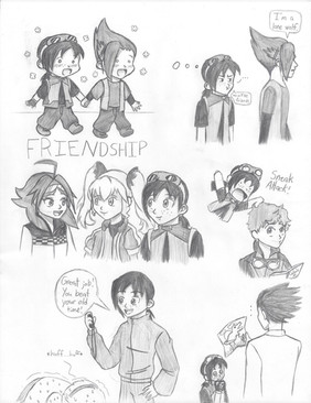 I was trying to draw Fletcher then Dua and Charlotte showed up, then Dontay and Mila and of course Chike had to sneak in... so the whole groups here now! BTW this is Chike's main friendship group.Read more about them here:
