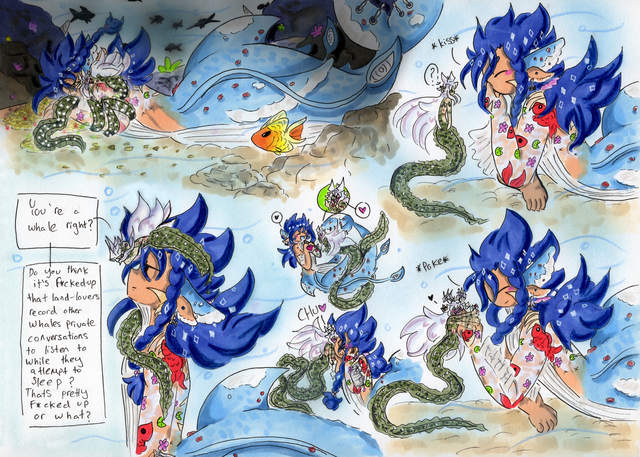 MerMay Day 19: TurtleI'll be honest and say I only picked this prompt purely because I wanted to draw Rishid as a turtle, I had the idea a while ago but kept procrastinating actually doing it-so I figured I'd use this prompt as an excuse to draw it and I also updated Malik's lantern fish design-I was unhappy with the colours I chose so now he's purple