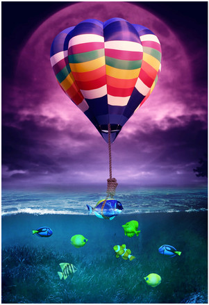 #balloon #dark #fantasy #fish #light #moon #sky #surreal #visual #art #artwork #digitalart #digitalpainting #dream #photomanipulation #photoshop #purple #surrealism #visualart