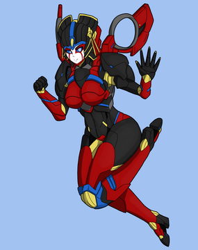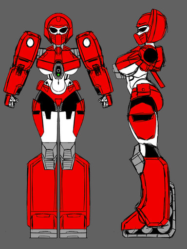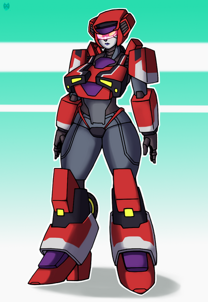 Actually, she turns into a concept sports car! I gave the artist references for a particular make of Corvette I liked, so she would have some appropriate details on her.