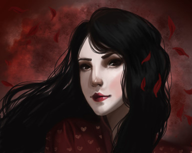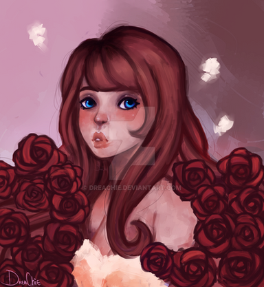 This is a wonderful piece. It is excellently drawn. I love the roses in her hair and all around her. I love the green background. Most excellent. Thank you for letting me fave this wonderful piece of art.